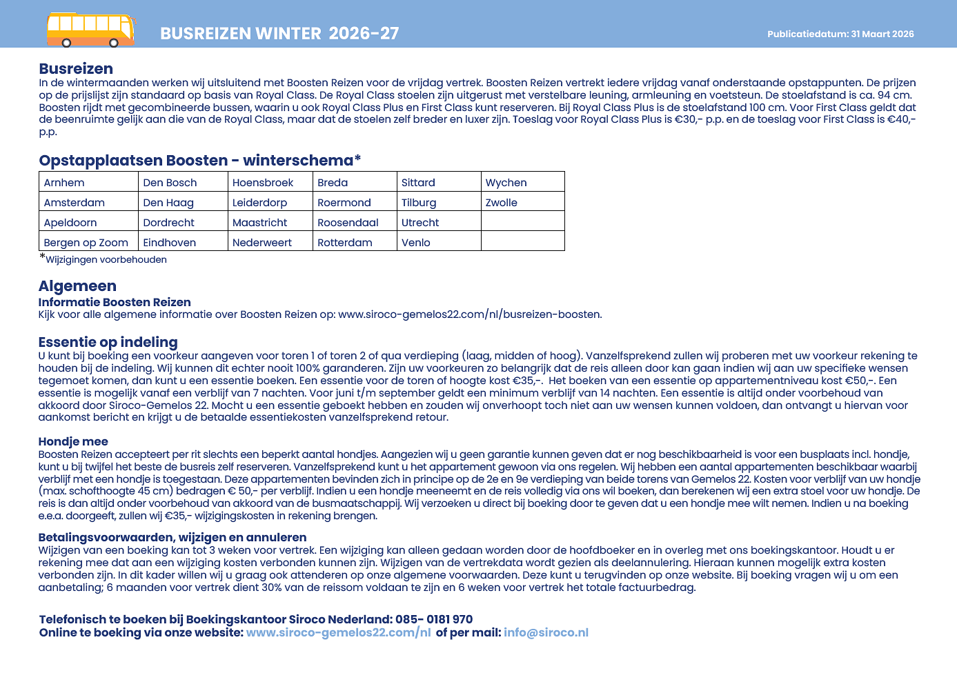 Extra informatie over de busreizen: